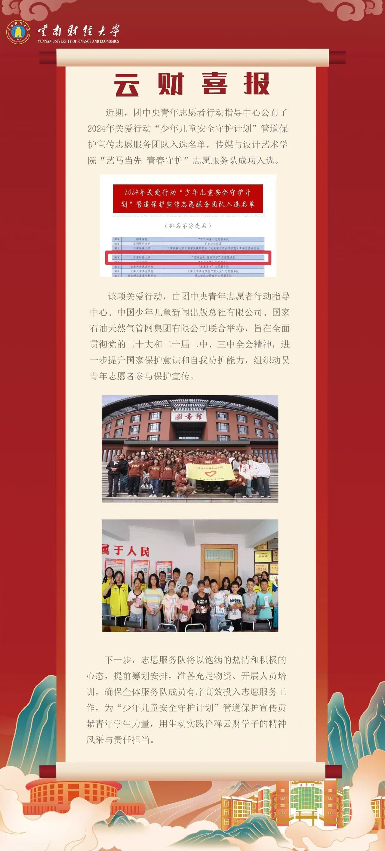 WilliamHill官网1支学生志愿服务队入选2024年全国关爱行动“少年儿童安全守护计划”管道保护宣传志愿服务团