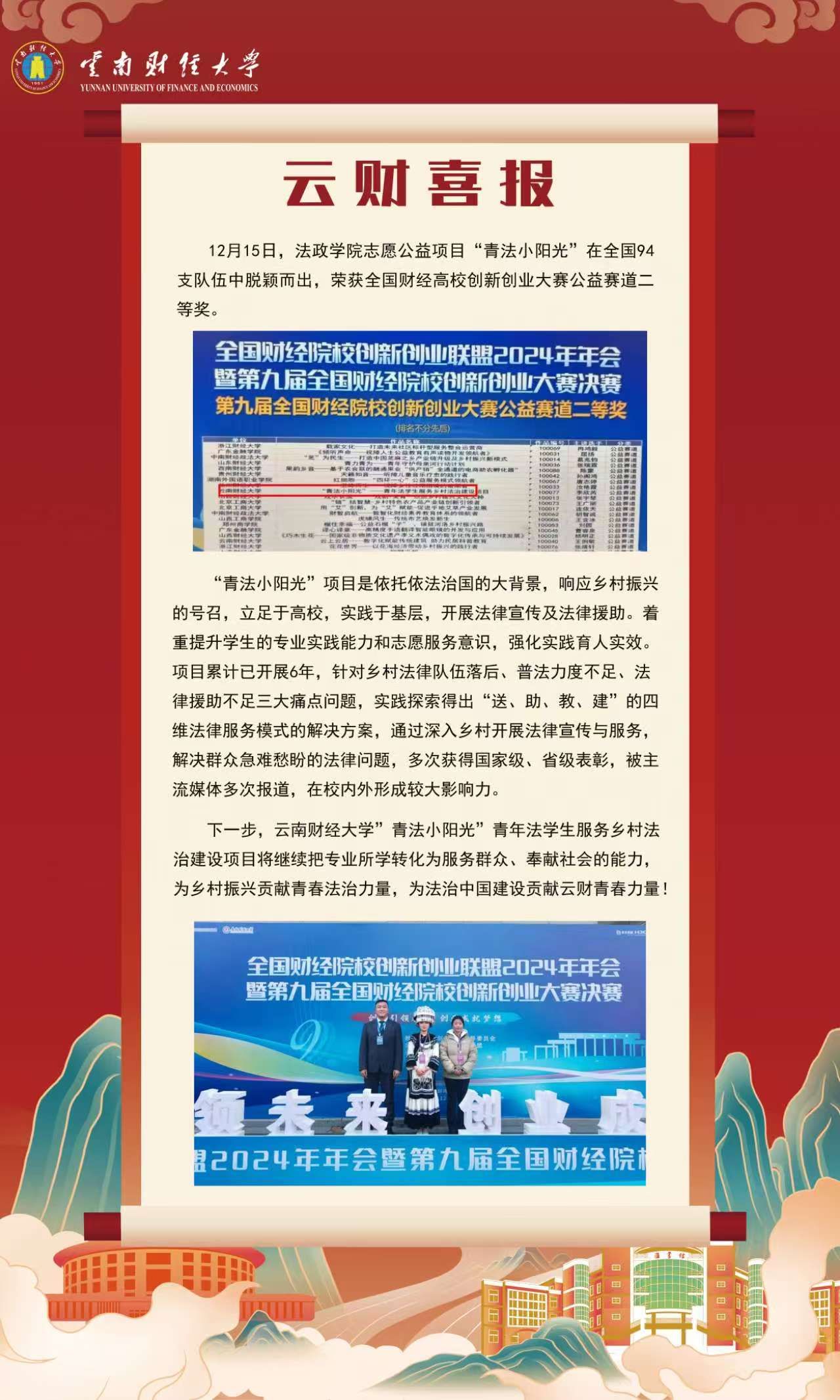 WilliamHill官网法政学院“青法小阳光”项目荣获全国财经高校创新创业大赛公益赛道二等奖