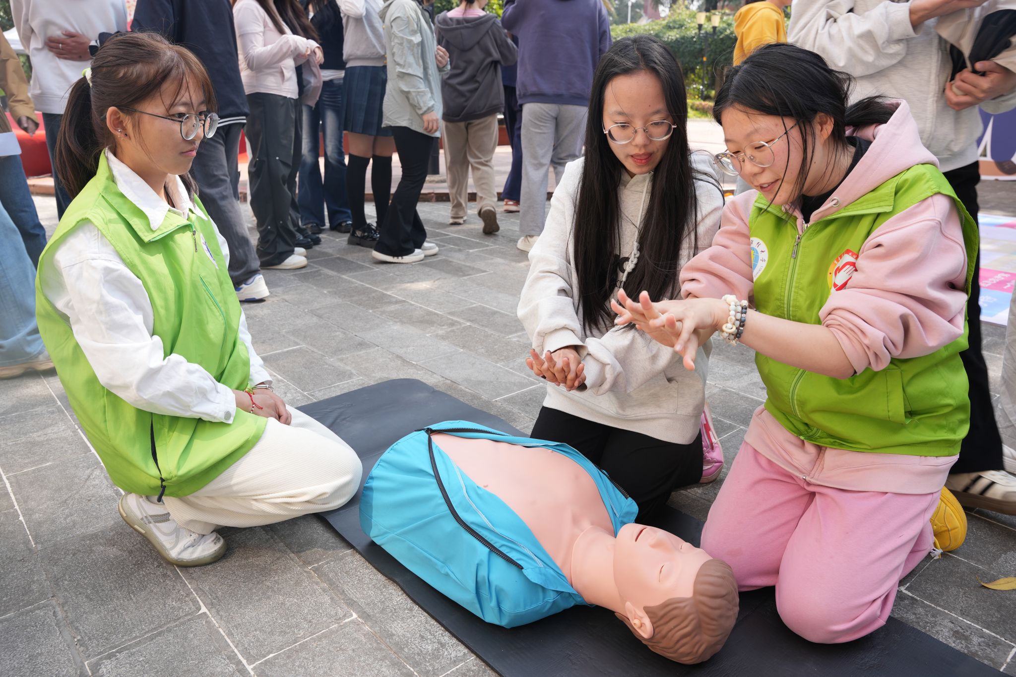 WilliamHill官网红十字会服务队同步推出“生命守护者计划”,将应急救护培训转化为沉浸式闯关体验。活动现场设置“黄金四分钟”心肺复苏模拟区、“创伤救护”情景演练区、“安全知识”智慧竞答区三大实践版块, 由持证救护员现场教学。 师生在专业指导下,系统掌握 AED 使用、止血包扎等急救技能。