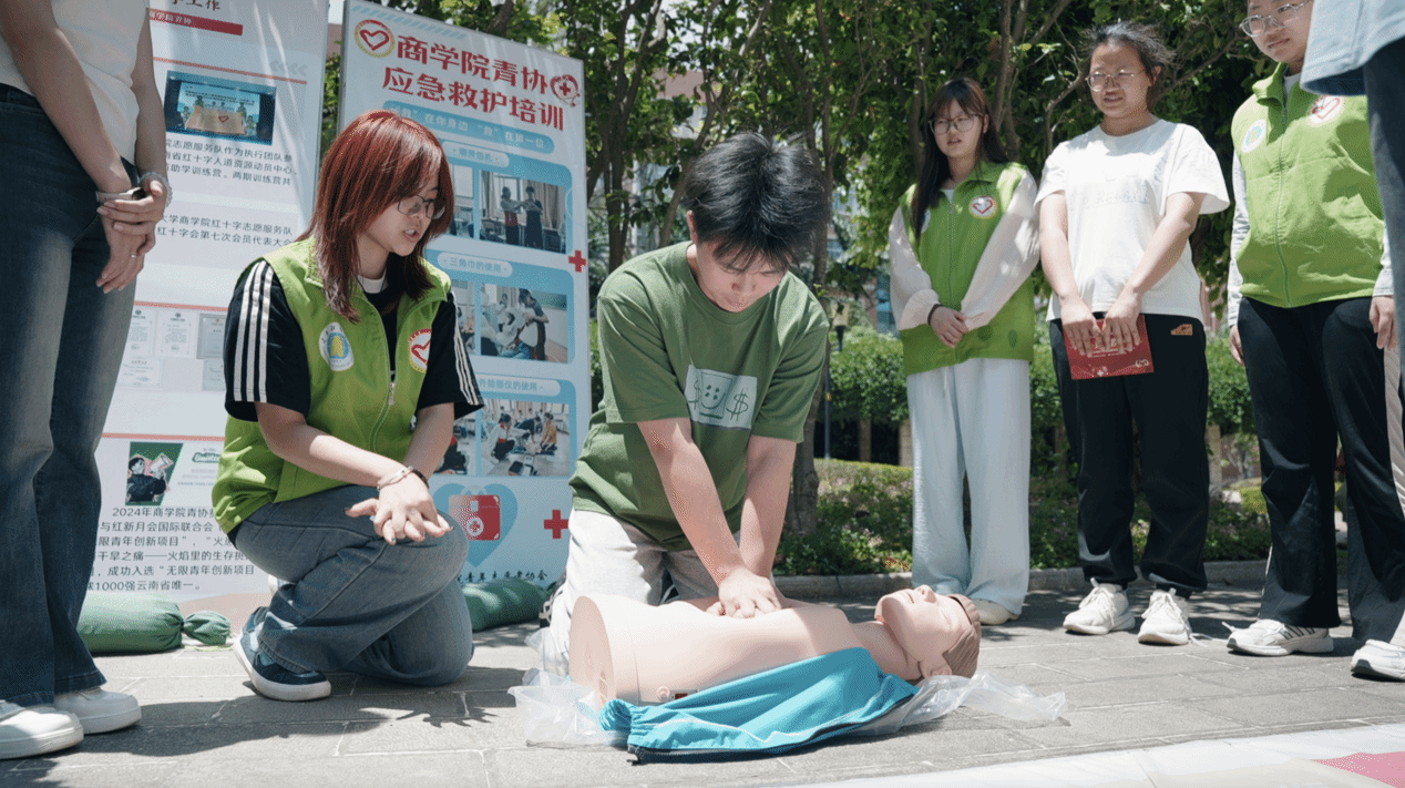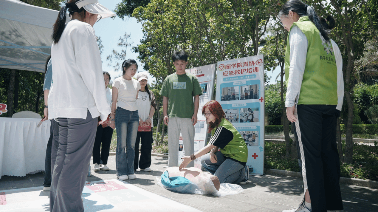 统计与数学学院开展“‘红’心向救,‘会’聚爱心”志愿服务项目,通过急救知识科普活动、急救知识大比拼、“一部手机懂‘三献’”等科普活动提升同学们的急救知识和健康意识,推动师生实现从“知识普及”到“技能掌握”的实践跨越。