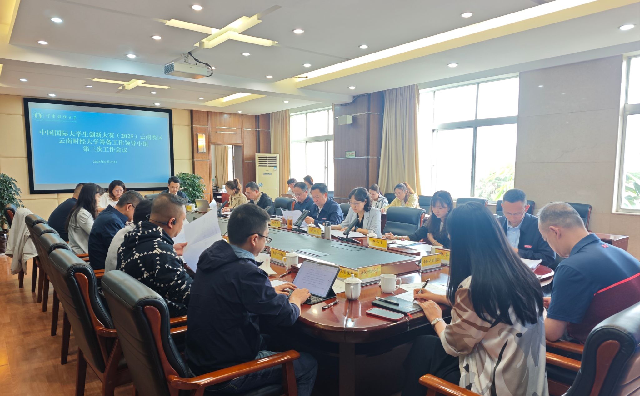 6月23日上午,学校召开中国国际大学生创新大赛(2025)云南赛区筹备工作领导小组第三次会议,校党委副书记施仲军,校党委委员、副校长旷锦云,颜明参加会议。