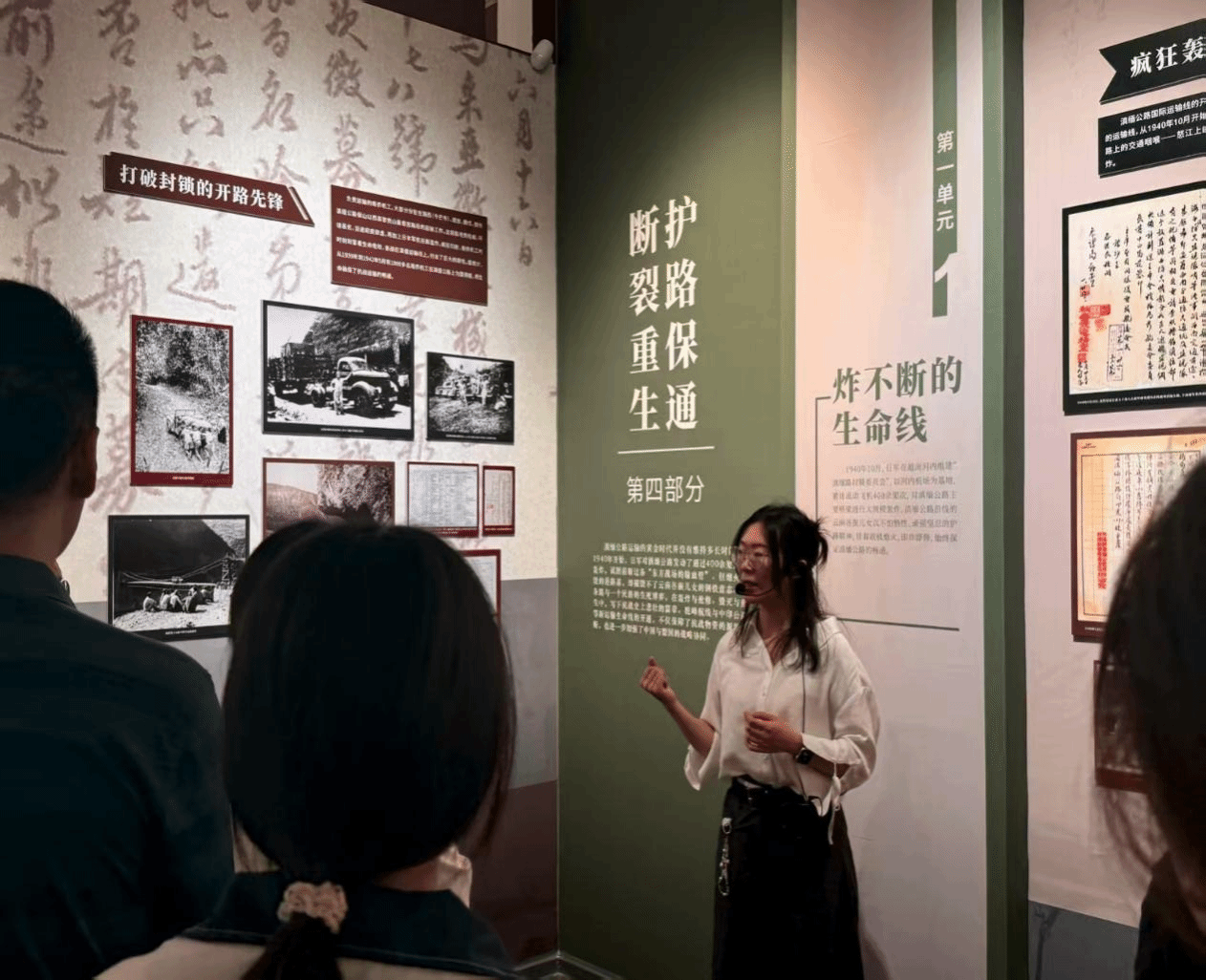 历史无声,文字有言。展览以大量历史图片、文献、筑路工具和场景复原,清晰展现了滇缅公路从修筑、运输、阻断到修复的全过程。同学们认真观看展品、听取讲解,深入了解这条公路在极端困难条件下修建的艰辛过程和重大战略意义。通过重温这段历史,更加真切地感受到了先辈们用血肉铸就的国家生命线所蕴含的强大精神力量。
