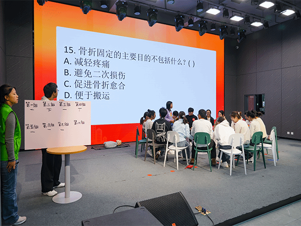 大赛设笔试、理论知识抢答、实操三个环节,特邀云南省红十字应急救护培训讲师陈红、周晨晨担任评委,并为参赛选手开展赛前培训。共吸引了全校56组共112名同学积极参与。现场气氛紧张热烈,同学们反应敏捷、应答如流;在实操过程中,选手们动作规范、沉着有序,生动诠释了“时间就是生命”的急救理念。经过激烈角逐,大赛最终评选出国际语言与文化学院李好然,张笑雨等一等奖2组、信息学院罗吉泽,李雅婷等二等奖3组、商学院匡培莲,兰心悦等三等奖5组及物流与工程学院毕楚然,郑品梅等优秀奖6组。