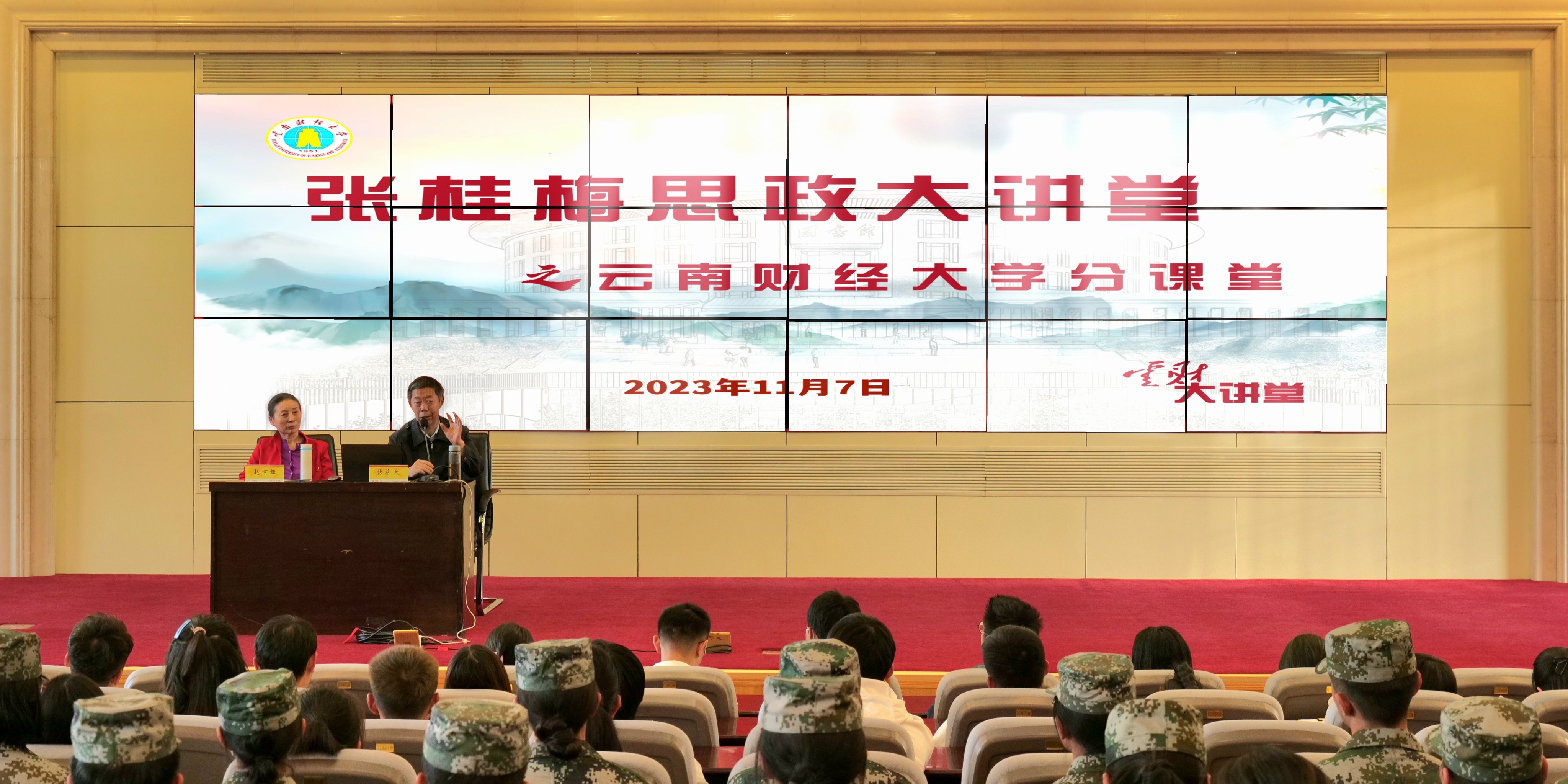 为教育引导广大青年学生传承红色基因,赓续红色血脉,11月7日下午,张桂梅思政大讲堂第四讲WilliamHill官方网站分会场在WilliamHill官方网站国际学术报告厅举行。中央团校特聘教授、云南籍开国中将赵镕将军之女,赵京娅;中央团校特聘教授、开国少将张蕴钰之子,张旅天;宣讲团成员张婧菲老师应邀与云财青年分享了红色家风的传承故事。校党委委员、宣传部长寸丽锋出席活动,校团委书记舒挺主持活动。