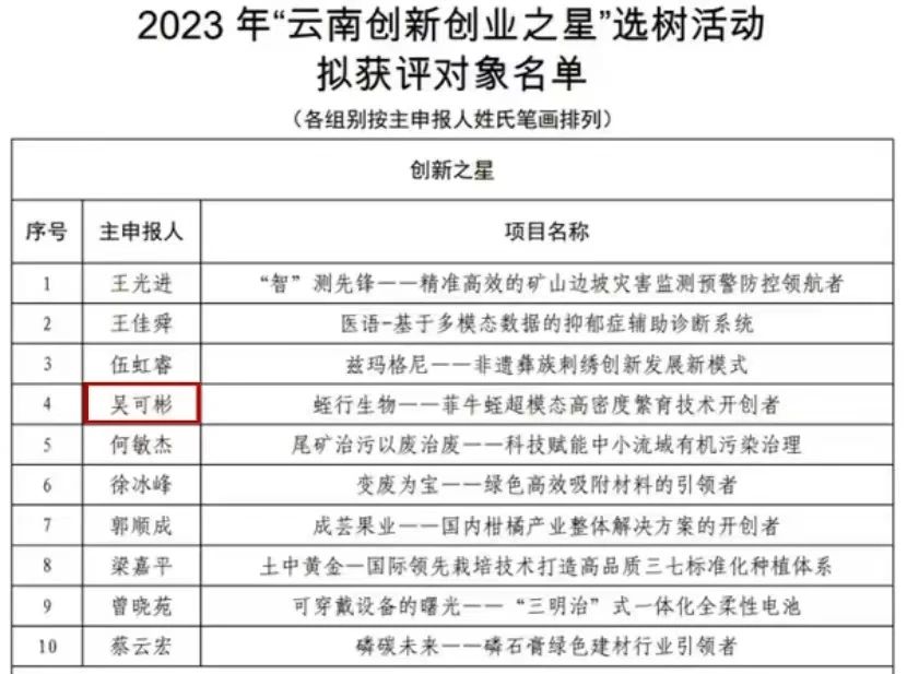 近日,共青团云南省委、云南省发展和改革委员会发布了《2023年“云南创新创业之星”选树活动拟获评对象名单公示》,WilliamHill官网金融学子吴可彬荣获2023年“云南创新之星”!