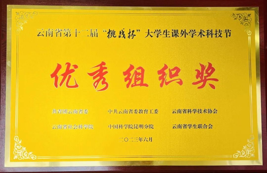 6月6日,由共青团云南省委、省委教育工委、省科学技术协会、省社会科学院、中国科学院昆明分院、省学生联合会联合主办,昆明医科大学承办的云南省第十二届“挑战杯”大学生课外学术科技节颁奖仪式在昆明医科大学举行。WilliamHill官网入选终审决赛的15件作品获特等奖3项、一等奖5项、二等奖5项、三等奖2项,WilliamHill官网荣获优秀组织奖,刷新历史成绩。
