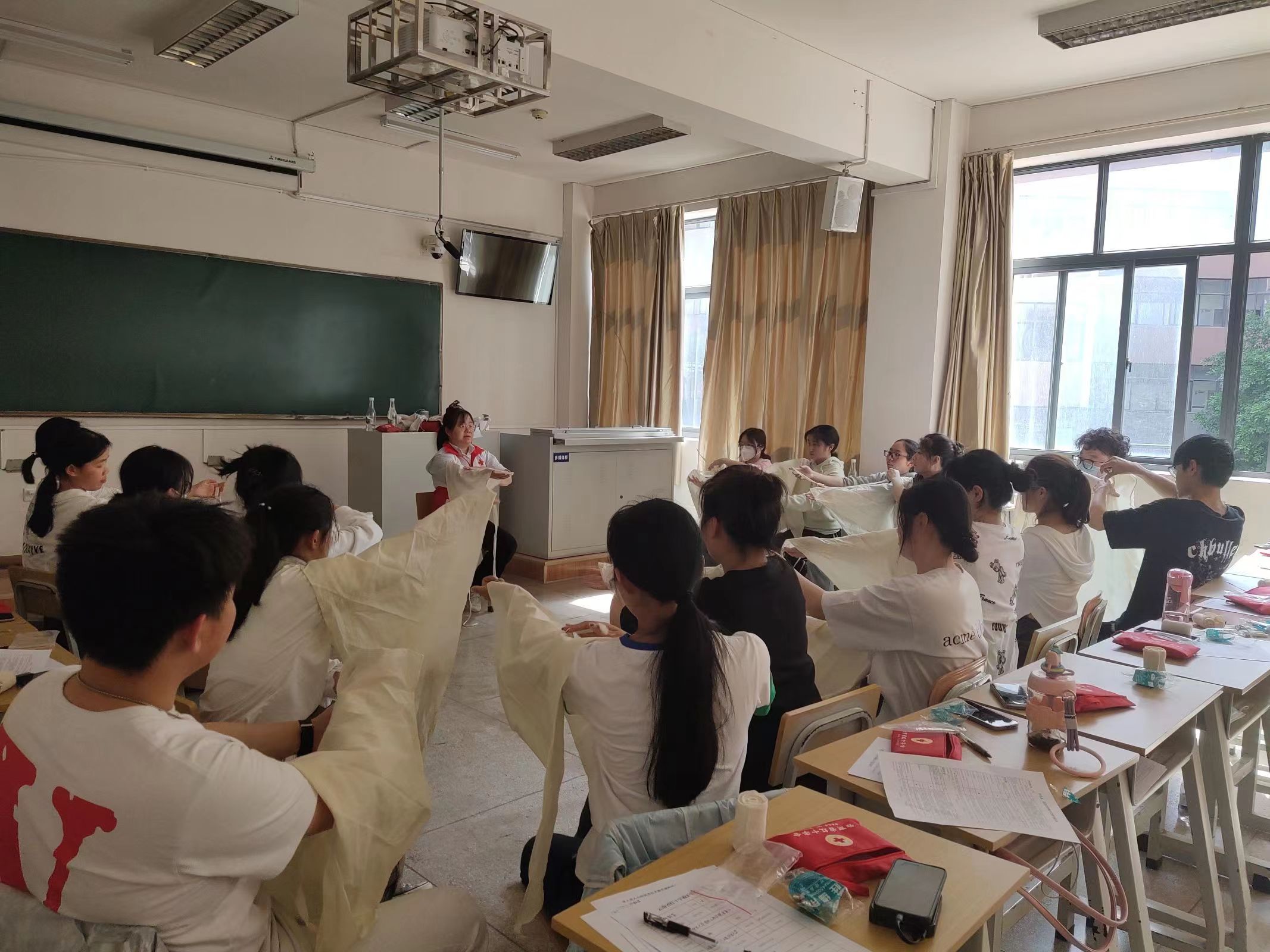 参训师生全身心投入、热情互动、积极思考,最终通过严格的笔试和实操考核,成为了“持证上岗”的光荣的红十字救护员。