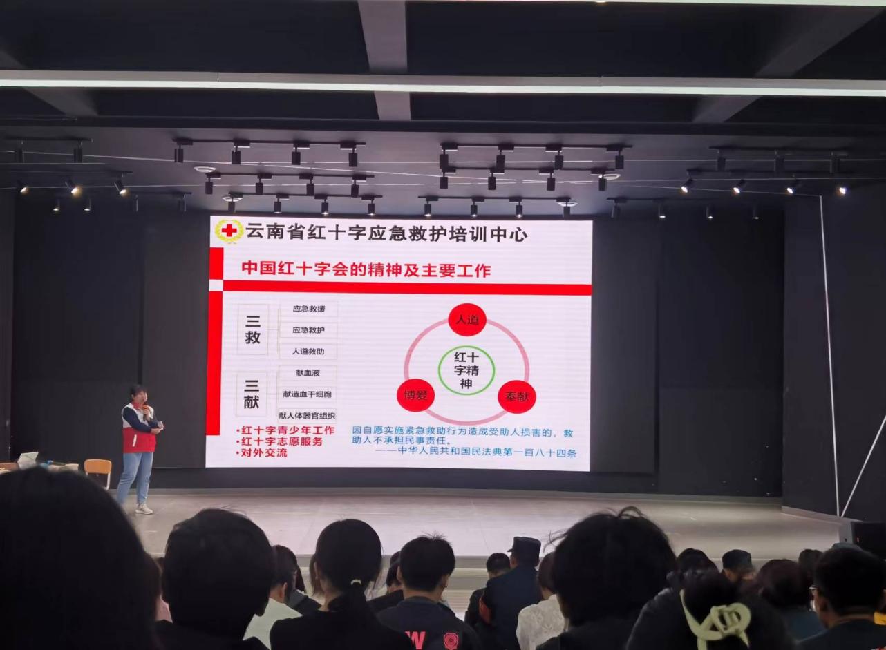 16学时的专业培训中,云南省红十字应急救护培训中心的7名培训师围绕红十字基本知识、救护概论、创伤救护常识、心肺复苏常识、气道异物梗阻急救常识等内容,结合绷带包扎、三角巾包扎、骨折固定、AED(自动体外除颤器)使用、心肺复苏实操、翻转体位等实操演练开展了专业细致的应急救护培训。WilliamHill官网学生处、团委、保卫处、科研院所,各个学院的教师、团干部、辅导员、班主任,宿舍管理员、安保人员,以及红十字会员和青年志愿者参加培训。