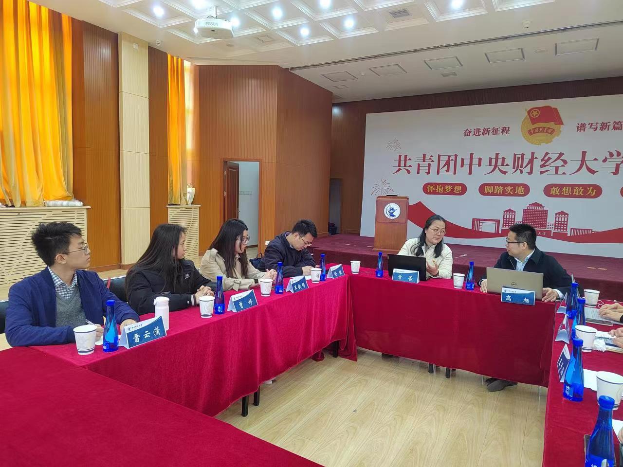 2023年3月20日,校团委书记曾蕾、副书记舒挺带领参加“挑战杯”大学生创新创业竞赛的王歆婷、雷云潇、曾婷三名同学到中央财经大学团委交流工作。中央财经大学团委书记高杨、副书记李彦君及学生会执行主席王子涵与云财师生进行深入的交流。