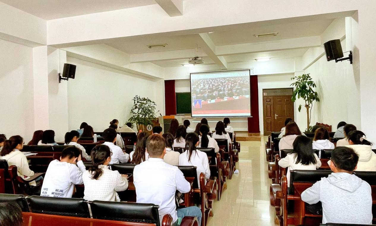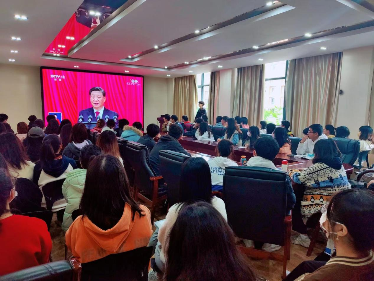 校团委副书记 舒挺:今天,跟随总书记的话语,通过一组组数据、一件件实事,我们回看了这激荡的十年、笃行的十年,深切体会到新时代成就的伟大;一句句铿锵的誓言、一句句庄严的宣告,也明确宣示了党在新征程上举什么旗、走什么路、以什么样的精神状态、朝着什么样的目标继续前进