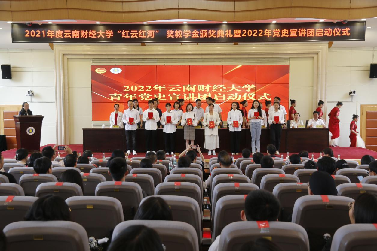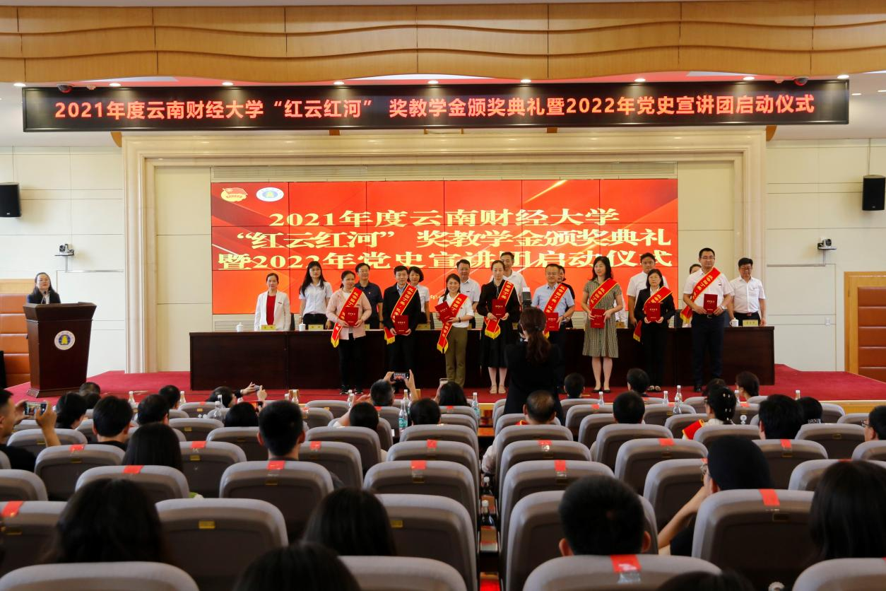 校党委委员、宣传部部长徐宝春宣读“红云园丁奖”获奖名单,组织部部长吴应利宣读“红河奖学金”获奖名单。2021年度“红云园丁奖”获奖教师共计25人,“红河奖学金”获奖团队共计6组,获奖学生共计77人。