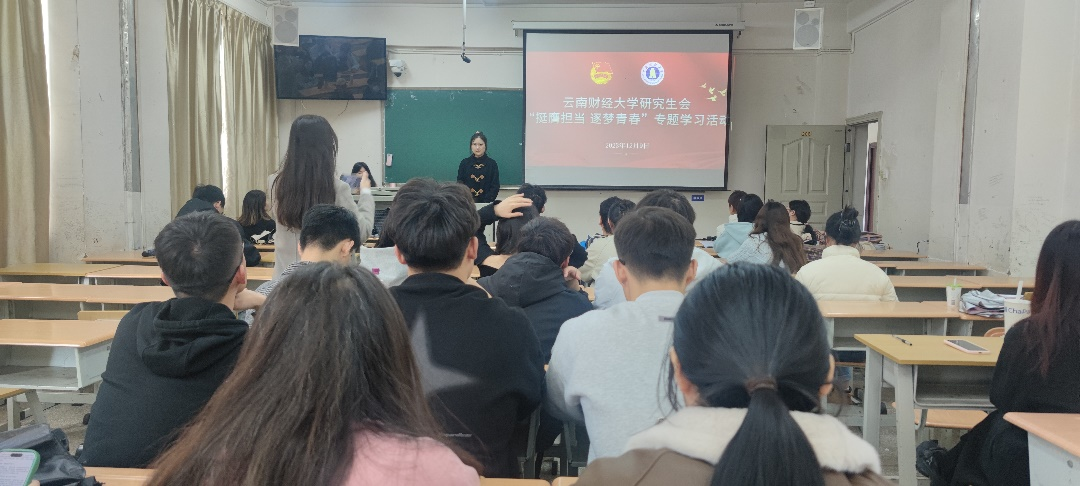 为深入学习贯彻习近平总书记关于青年工作的重要思想,12月9日晚,研究生会在北院卓远楼206开展“挺膺担当 逐梦青春”专题学习活动,本次专题学习由许雨璠主讲,研究生会全体工作人员积极参加。