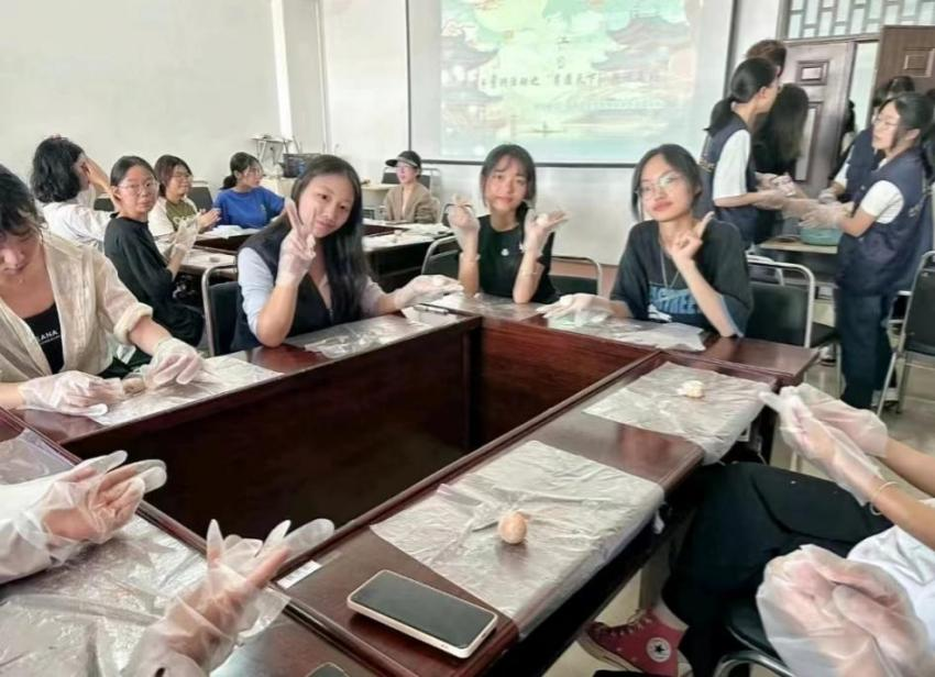 首先,志愿者以热情的开场白欢迎了同学们和留学生的到来。在志愿者们的带领下,同学们观看了有关中秋节历史和传统习俗的视频,更深层次地了解中秋节所承载的民族文化记忆。随后,志愿者们进行了“中秋传说有奖问答”环节,同学们踊跃发言。在活动中,志愿者们介绍了桂花酒、月饼等中秋节特有的美食。为让同学们沉浸式感受中秋氛围,此次活动带领大家共同制作了冰皮月饼,来自老挝和越南的留学生同学也积极参加,体验了樱花、茶花、莲花等多个花色模具,现场气氛十分热烈。最后,同学们对制作成品进行了展示,互相交流了本次活动的感想,并合影留念。留学生同学也对此次活动表示了高度赞扬,希望之后能继续参与到此类活动中。