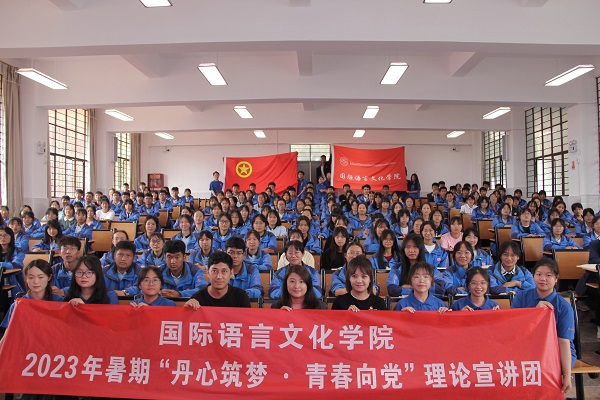 2023年7月14日上午,国际语言文化学院前往大理州永平县一中开展“丹心筑梦•青春颂党”国家通用语言文字推广活动。参与本次活动的有永平县一中的170名学生代表及“丹心筑梦·青春向党”理论宣讲实践队全体队员。实践队成员王蕊担任本次活动的主持人,潘蓉与钟冬梅主讲,永平县团委书记高晓鹃出席本次活动。