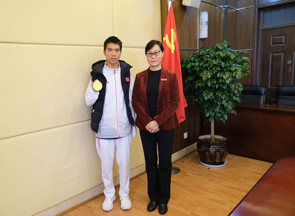 11月1日,学校党委书记王建颖亲切会见了李朝燕。王建颖代表学校对他取得的优异成绩表示衷心祝贺,高度赞扬李朝燕是践行“自强不息 敢为人先”云财精神的典型代表,他身上所展现的勇于拼搏、坚持不懈、不断超越自我的自强精神值得每个云财人学习,希望李朝燕在今后的学习生活中继续发扬敢于拼搏、勇于挑战的精神,再接再厉、再创佳绩,常回母校看看,将宝贵的精神品格和精彩的人生经历传递分享给更多学弟学妹,带动他们形成不畏艰难、健康向上的优秀品格。李朝燕对母校给予的培养关心表示感谢,表示学校的帮助支持是支撑他一路奔跑至今的重要支撑,所取得的成绩离不开母校的鼓励和激励。他还表示,希望自己能成为一名教师,把体育精神传递给更多的同学。