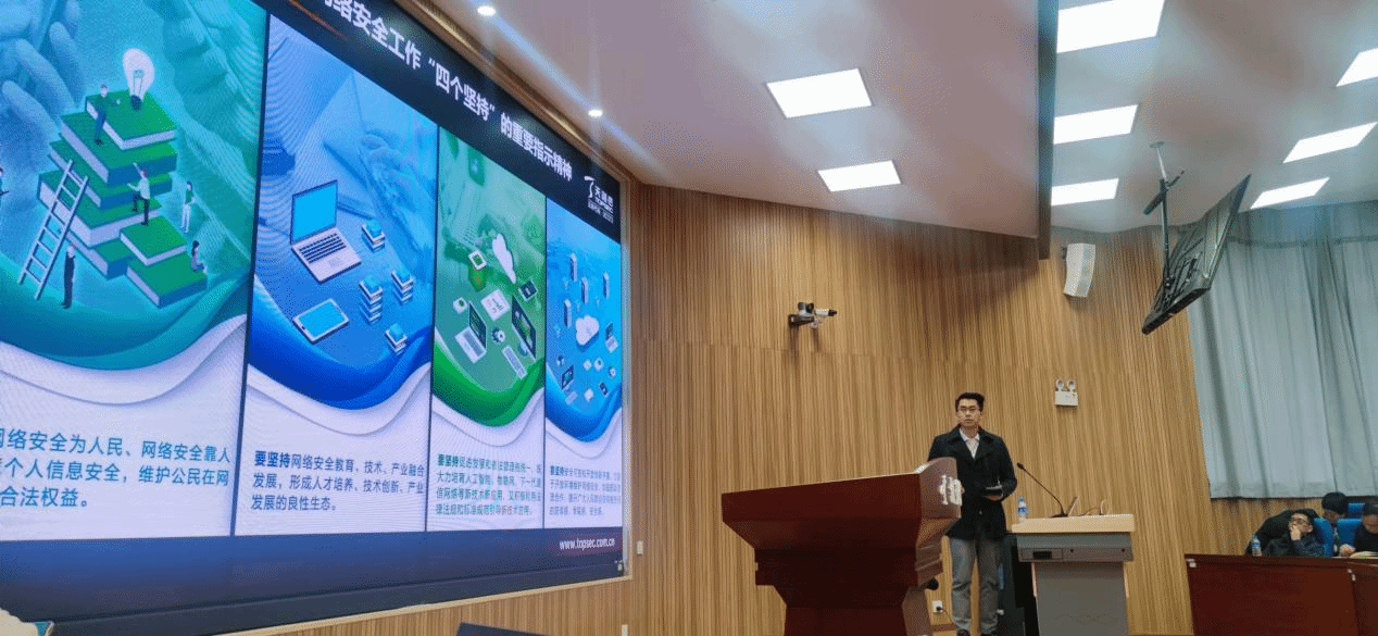 会议邀请网络安全专家进行了专题宣讲,分享了当前网络安全领域的最新动态与实用经验。专家提醒,随着信息技术的快速发展,网络安全形势日趋复杂,学校需构建更完善的防护体系,同时每位师生也应增强网络安全意识,规范使用个人终端设备。