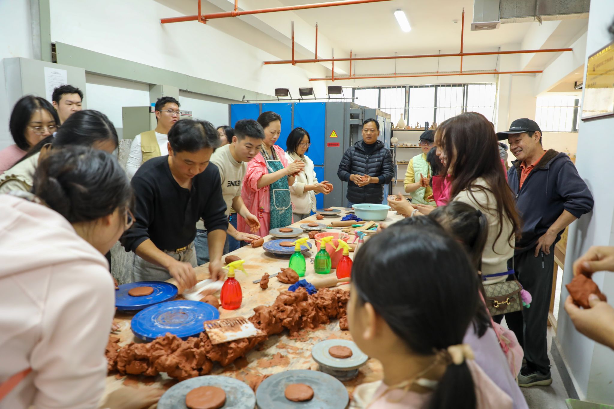 在传媒与设计艺术学院陶艺工作室,侯蒙老师向校友们讲解陶艺制作的历史和工艺,现场演示手工捏塑技法。校友们在“揉、捏、拉、抹”间,亲手制作一件件专属的作品,在互动交流中加深了解、深厚情谊。