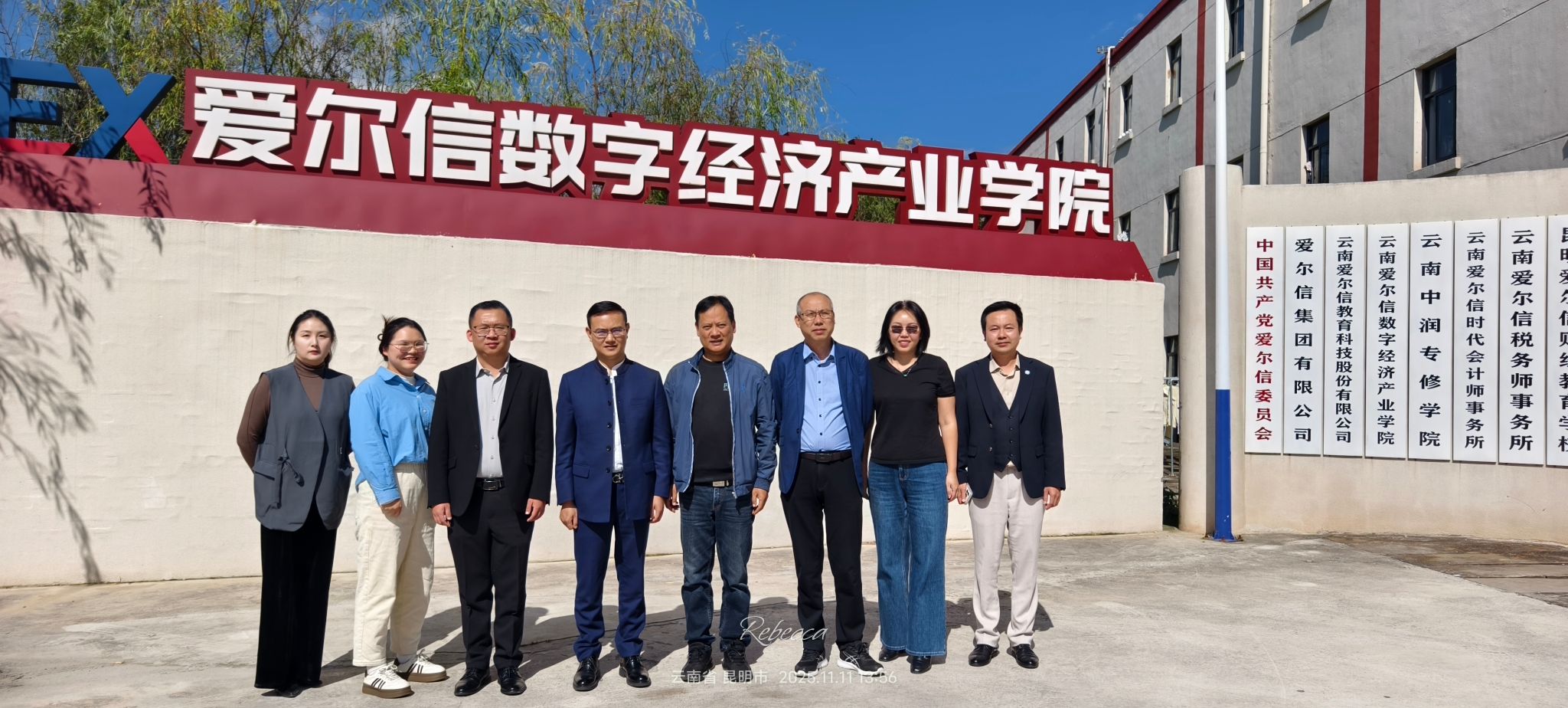 11月11日下午,社会合作办公室(校友工作办公室)一行走访校友企业爱尔信集团有限公司。公司创始人、董事长,云南省第十四届人大代表,昆明市第十四届政协委员,2001级校友毛良带领参观集团总部及爱尔信数字经济产业学院。