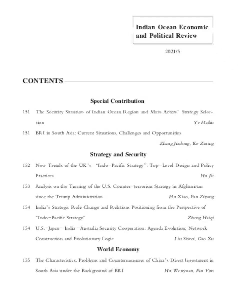 【关键词】“一带一路”;南亚;印度;斯里兰卡;巴基斯坦