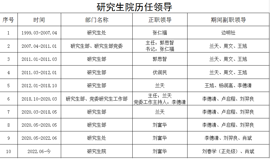 研究生院历任领导
