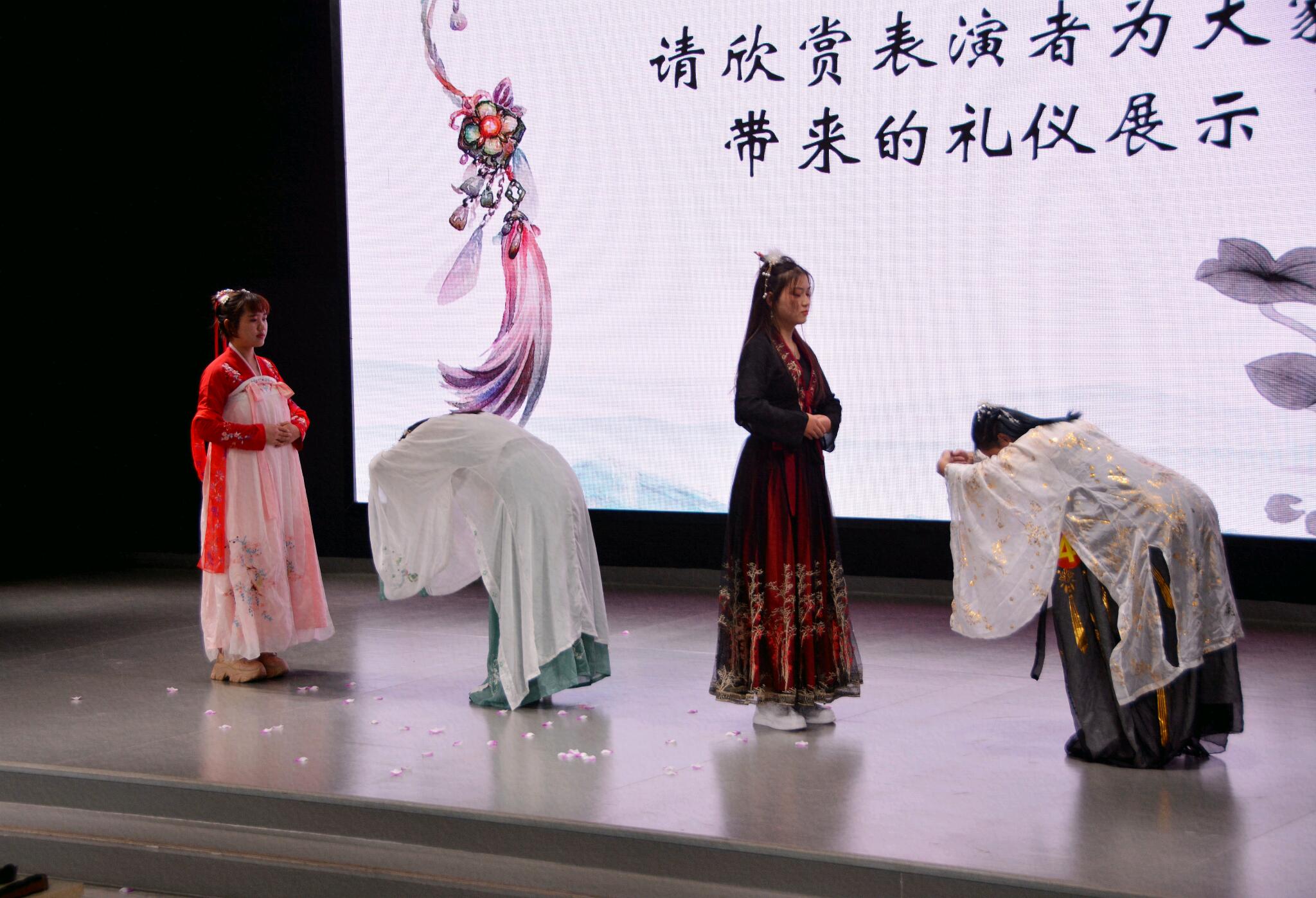 随着礼乐传习社开场表演《折柳》,身着汉服、旗袍的礼乐社成员和参赛选手进行展示,本次礼仪大赛拉开序幕。本次比赛共有五个环节,分别是礼仪展示、自我介绍、才艺展示、知识问答、拉票环节。在礼仪展示环节,各参赛选手向在场观众展示古代礼节,随后各选手进行自我介绍,选手们通过舞蹈表演、古风歌曲以及诗词朗诵等形式进行才艺展示,将本次比赛推向高潮,台下观众掌声不断,喝彩连连。知识问答环节,选手们对随机抽取的古代礼仪题目一一进行回答。拉票环节,选手各尽所能为自己拉票,场内气氛十分热烈。最后评委代表对本次活动作总结,充分肯定选手们的精心准备和优异表现,同时指出选手们在动作,语言,舞台表现力等方面不足并予以改正建议。