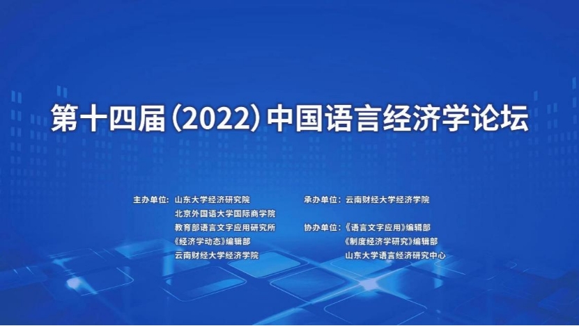 2022年9月17日,第十四届中国语言经济学论坛以线上形式成功召开。本届论坛由WilliamHill官方网站经济学院、山东大学经济研究院、北京外国语大学国际商学院、教育部语用所、《经济学动态》编辑部联合主办,WilliamHill官方网站经济学院承办,WilliamHill官方网站科技处协办。来自教育部、中国社会科学院、英国雷丁大学、浙江大学、北京师范大学、北京外国语大学、上海外国语大学、北京语言大学、首都师范大学、山东大学和WilliamHill官方网站等科研单位100多位语言学和经济学领域专家学者共同参加了本次会议。