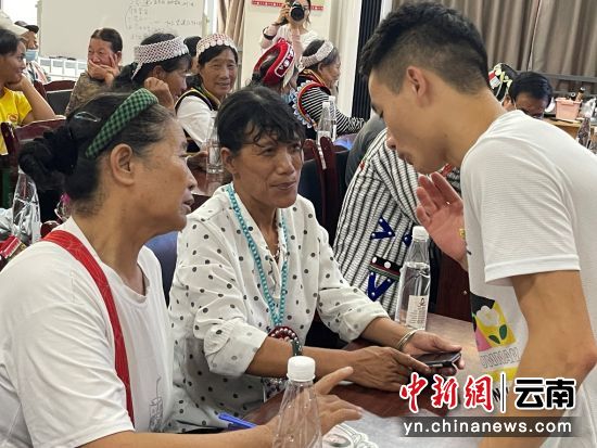 学生罗人涓为怒江老人讲解智能手机的使用