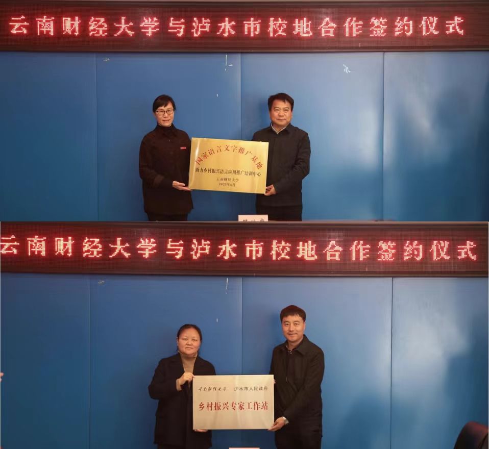 会上,WilliamHill官方网站与泸水市人民政府共同签署了《联合成立“乡村振兴专家工作站”框架协议》,并举行“乡村振兴专家工作站”和“国家语言文字推广基地助力乡村振兴语言应用推广培训中心”授牌仪式。双方结合各自实际,分别就干部队伍、人才培养培训、乡村振兴、文化旅游、实训基地建设、校地合作等领域进行了深入交流,并达成初步共识。