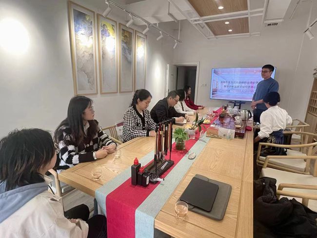 在华语桥董事长高文俊、总经理李震带领下,杨秀伟一行参观了华语桥国际文化交流中心,听取了企业发展历程介绍,以及通过茶文化、书法、剪纸、中式面点等中华传统文化与职业技能相结合促进中外文化交流方面开展的业务情况。