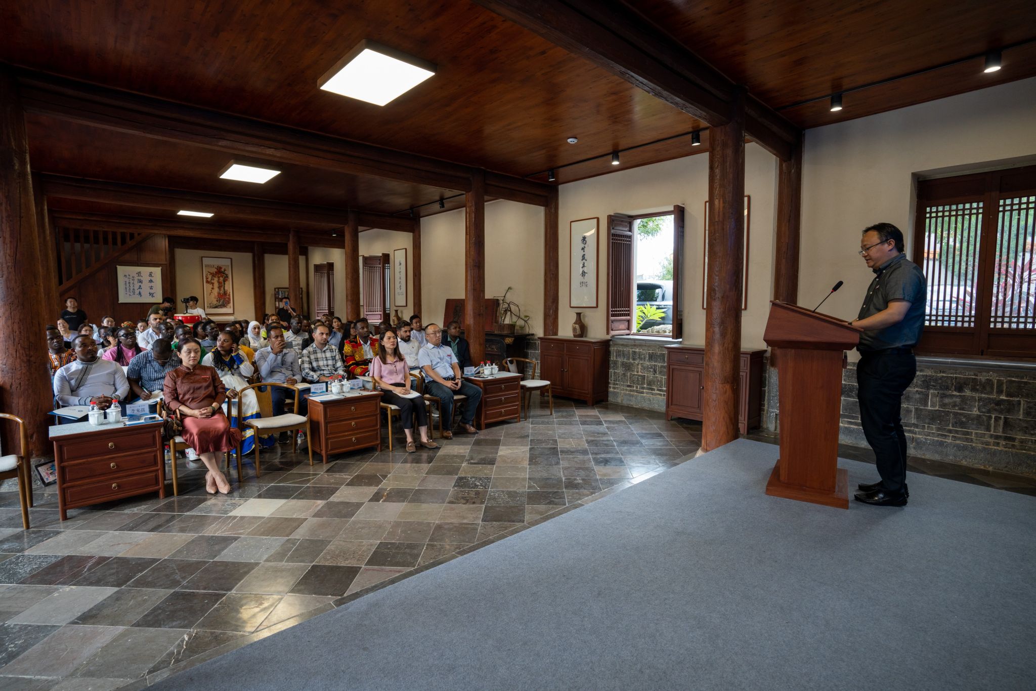 27日,2024级商务部发展中国家学历学位教育项目开学典礼在有着300余年历史的建水焕文书院举行,学校党委委员、副校长颜明出席并致辞,对外合作交流处处长、海外学院院长余泳主持。