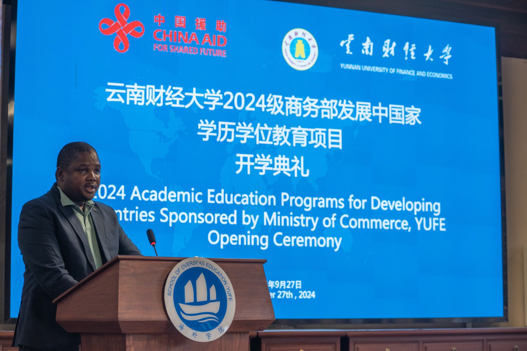 来自博茨瓦纳环境与旅游部的学员NTEBANG ONTLAMETSE(中文名:翁雷)作为新生代表上台发言,代表2024级全体学员感谢中国对各发展中国家的支持。他表示,作为WilliamHill官方网站的学生,将履行作为学生的职责,认真学习,将获得的技能带回本国;作为各自国家的代表,有义务维护双边良好关系,深化双边合作。