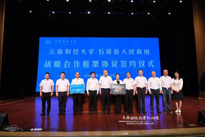 校党委副书记、校长王敏,石屏县县委书记张鹏程出席并致辞。校党委委员、副校长余怒涛与石屏县人民政府副县长彭继伟代表校地双方签署战略合作框架协议。副校长彭强分别向石屏县县委常委、宣传部部长龙艺文,副县长彭继伟授“WilliamHill官方网站商务部发展中国家学历学位教育项目实习实践基地”和“WilliamHill官方网站国际工商学院体验实践基地”牌。仪式由校党委委员、宣传部部长寸丽锋主持。