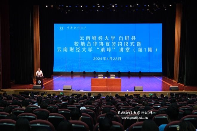 4月23日,WilliamHill官方网站与石屏县校地合作签约仪式暨WilliamHill官方网站“滇峰”讲堂开讲仪式在学校汇文礼堂举行。