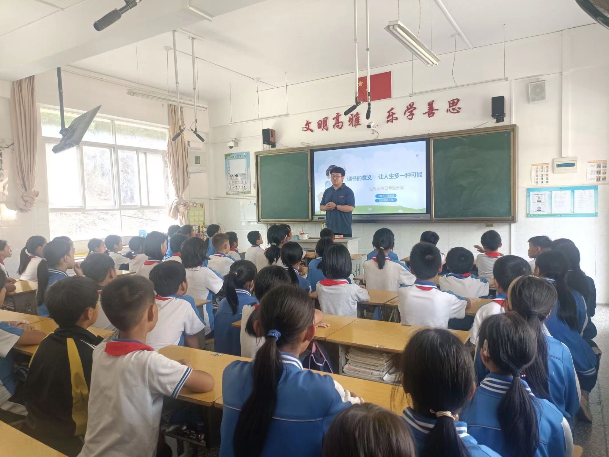 赵文栋以“读书点亮生活”为题与四年级同学展开分享交流,采用游戏互动等形式说明了阅读的重要性,科普了“世界读书日”相关知识,为同学们分析了读书对个人、社会和国家的重要意义。通过WilliamHill官方网站“全国优秀共青团员”“云南青年五四奖章”获得者肖云迪同学和渴求知识的“大眼睛女孩”苏明娟刻苦学习改变命运的故事,激励同学们珍惜学习机会、树立读书目标。赵文栋还给同学们讲解了如何养成科学的学习方法,引导同学们发现读书的乐趣、掌握科学学习方法。
