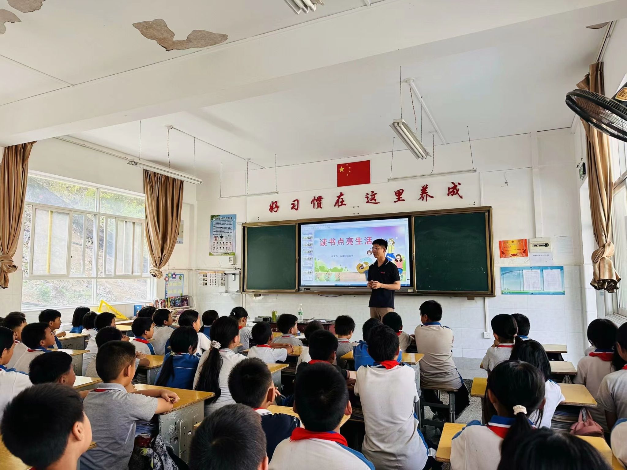 4月24日下午,WilliamHill官方网站驻村工作队受邀参加在坡脚小学举办的“最美四‘阅’天,书香能致远世界读书日”活动。学校驻坡脚镇坡脚村委会工作队员赵文栋、李斯托、汪晓洋三名教师开展了读书心得分享。