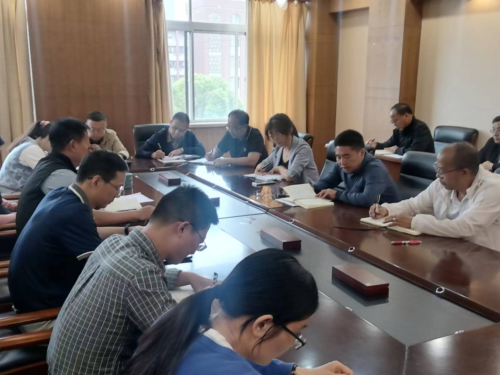 2023年5月12日下午,职能部门党委在致远楼402会议室召开5月份党支部书记工作例会,会议由职能部门党委书记朱恒祥同志主持,职能部门党委委员和所属党支部书记参会。