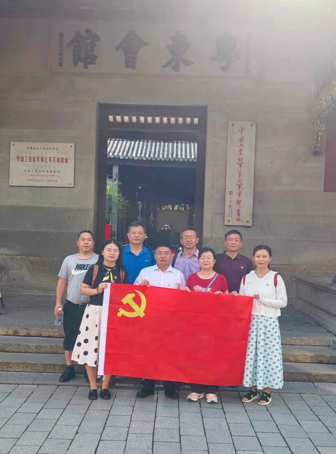 15日下午,党员们到达红七军军部旧址(粤东会馆)进行参观学习,零距离地接触邓小平、贺昌、陈豪人、张云逸、韦拔群等曾经办公、起居、议事的场所,追寻老一辈无产阶级革命家为祖国为人民英勇奋斗的光辉足迹。