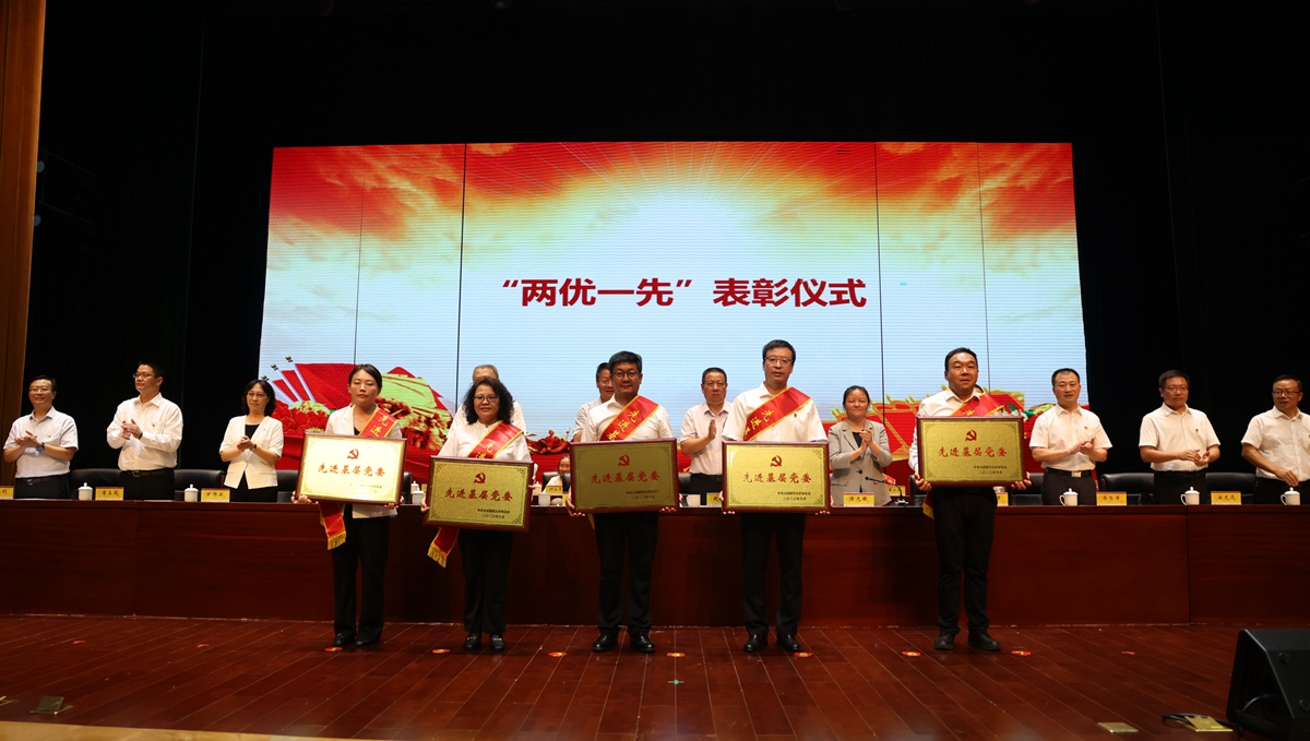 校党委副书记施仲军宣读学校党委“两优一先”表彰决定,对98名优秀共产党员、33名优秀党务工作者、23个先进基层党组织代表予以表彰。国际工商学院本科生第三党支部张菡哲、会计学院研究生第五党支部委员杨秀萍、物流与管理工程学院专职组织员丁章祥分别代表新党员、优秀共产党员、优秀党务工作者发言。