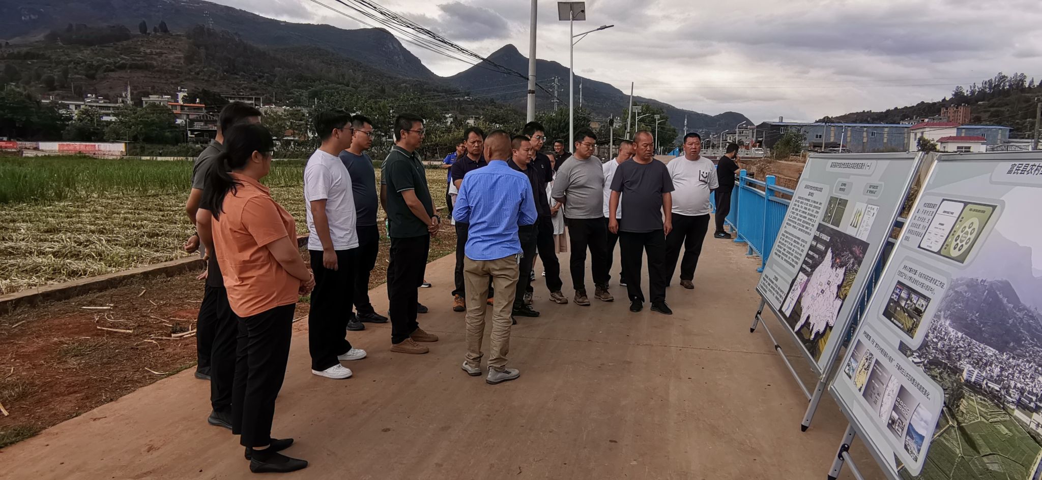在富民县大营街道,工作队一行与街道主要负责人就垃圾清运、污水治理、种养殖情况等开展座谈交流,实地考察了肉鸡养殖、苹果种植等情况。前往束刻村委会小水进村学习苗族村庄文化建设,详细了解小水井苗族农民合唱团的组建及管理运营情况。