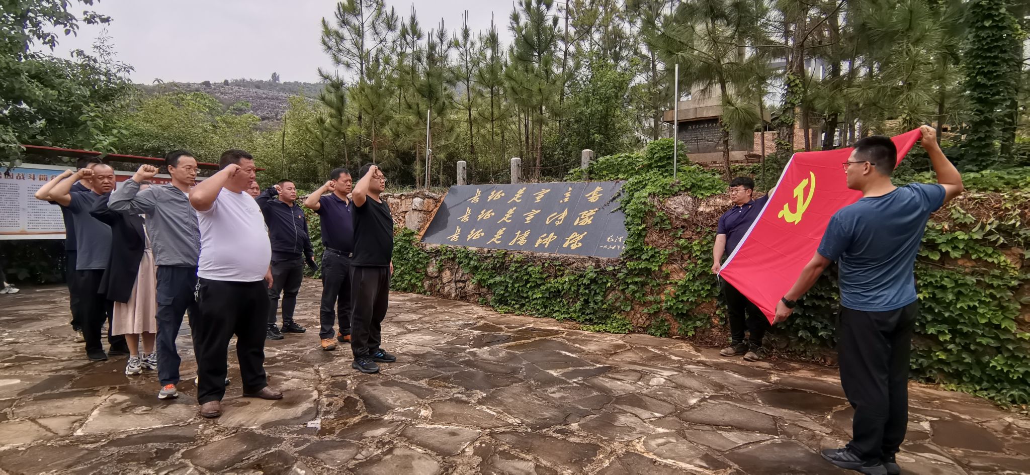 调研团一行前往东村镇小松园红军战斗纪念馆开展主题党日活动,重温入党誓词,传承红色精神。