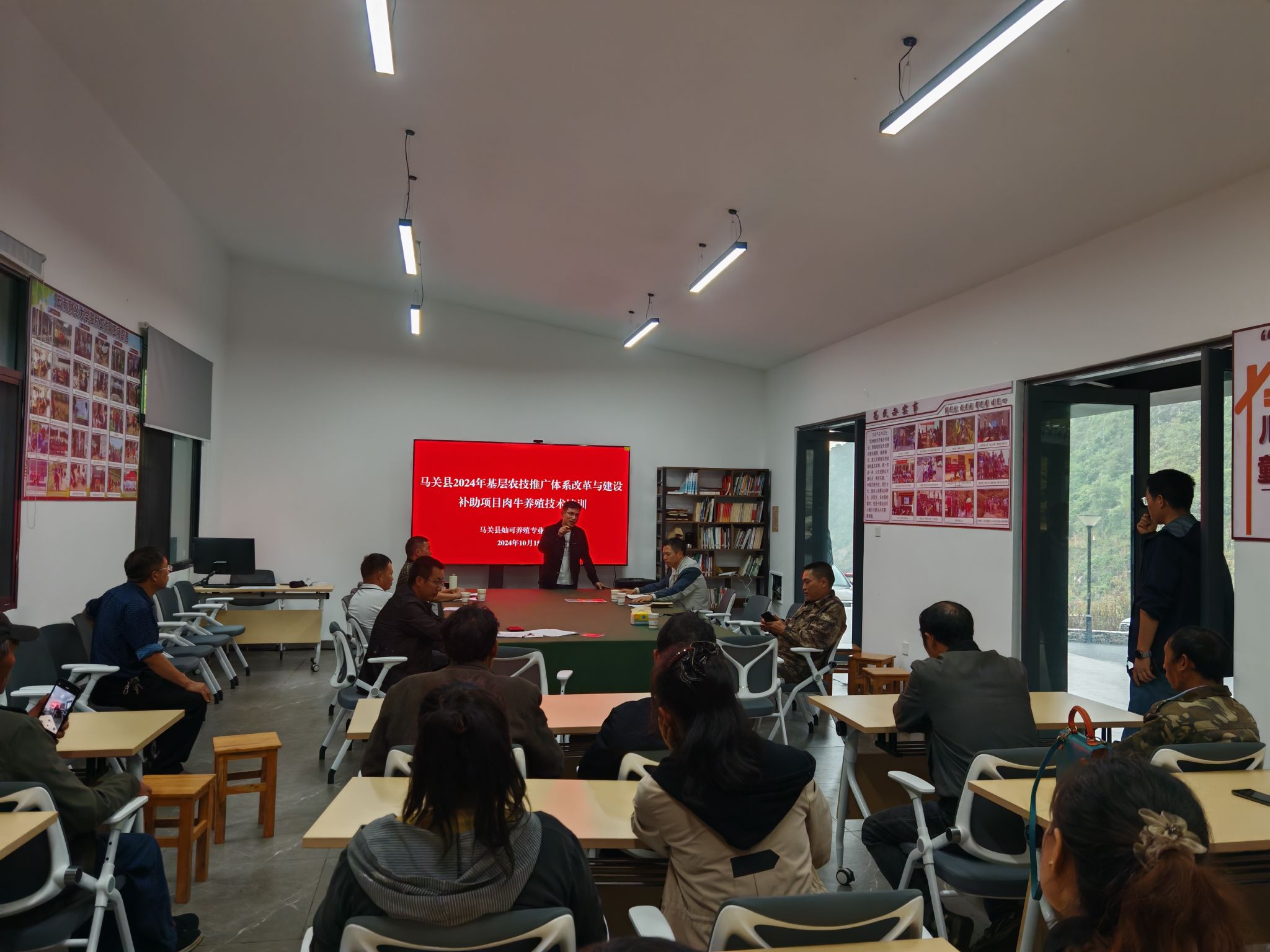 马关县畜牧局相关工作人员、坡脚镇镇长王应龙、学校驻村工作队员及养殖户共40余人参加培训。